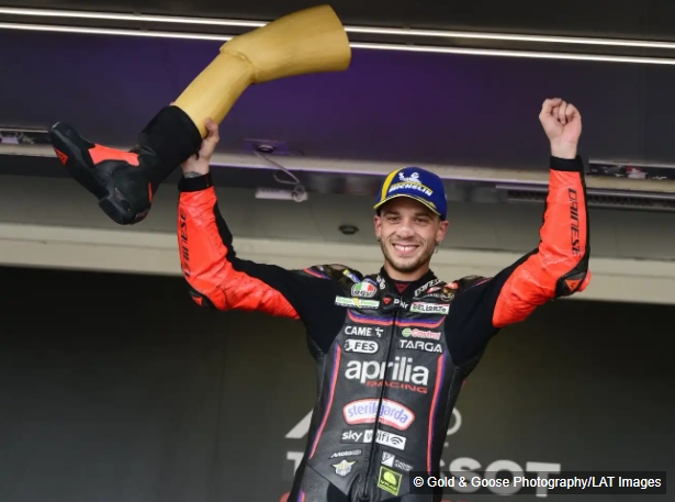 rotzdem zeigte der Italiener einen perfekten Samstag. Am Vormittag eroberte er nach Österreich seine zweite Poleposition als Aprilia-Fahrer und kämpfte am Nachmittag mit Marc Marquez um den Sieg, bis der Ducati-Fahrer in der sechsten Runde stürzte.