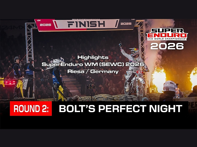 Im zweiten Lauf der FIM SuperEnduro Weltmeisterschaft 2025/2026 in der WT Energiesysteme Arena in Riesa (03.01.26) setzte Billy Bolt von Husqvarna Factory Racing seine Dominanz fort, indem er in Riesa, Deutschland, einen klaren Sieg sicherte.