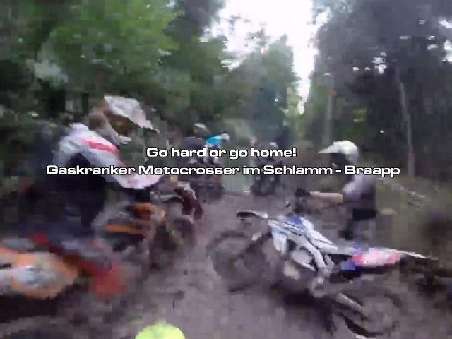 Motocross Gaskrank im Schlamm: "Go hard or go home"
