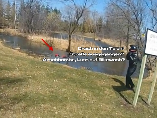 Details: Crash in den Teich! Straße ausgegangen? Arsch...
