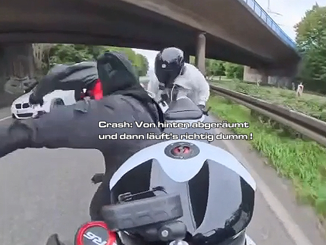 Biker von hinten abgeräumt, fliegt vom Motorrad, Motorrad fährt alleine weiter und schlägt beim nächsten Bikter ein.