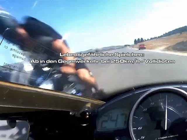 Lebensgefährliches Spielchen: Ab in den Gegenverkehr bei 250km/h - Vollidioten. Erfolgreiche Schwerstarbeit für den Schutzengel!