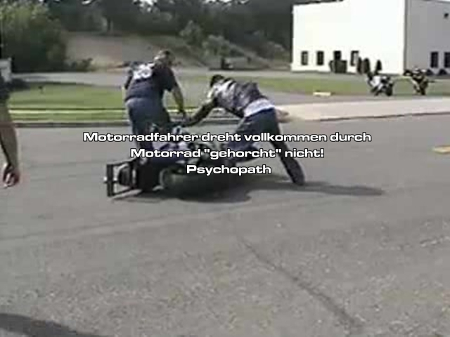 Motorrad Stunter dreht vollkommen durch weil das Motorrad nicht so will wie er *rofl* Der hat vor Gift Schaum vorm Mund!