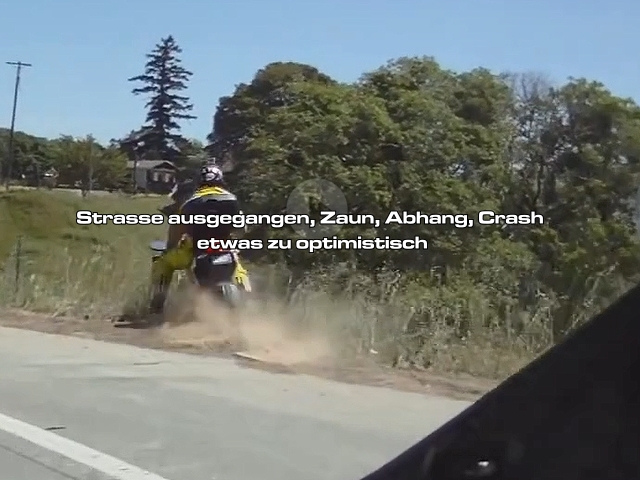Optimist: Strasse ausgegangen, Zaun, Abhang, Crash in zwei Perspektiven