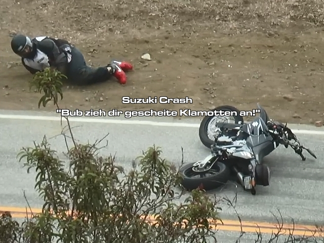 Details: Suzuki Crash: "Bub zieh dir gescheite Klamott...