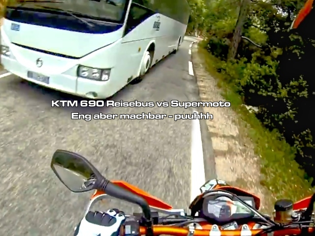 KTM 690 SMC-R vs Bus - Eng aber machbar