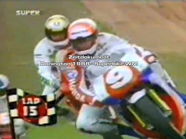 Superbike Weltmeisterschaft 1988 Donington mit Joe Dunlop, Fred Merkel, Fabrizio Pirovano, Roger Burnett, Davide Tardozzi, Marco Lucchinelli, Stephane Mertens,