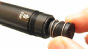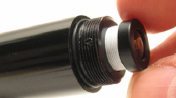 Setzen Sie das Wechselobjektiv an die Helmkamera an und drehen Sie es im Uhrzeigersinn in das Kameragehäuse vorsichtig ein. Achten Sie darauf das es sich nicht verkantet und somit das Gewinde beschädigt wird.