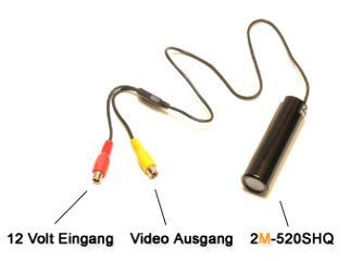 an der ein Camcorder nicht installiert werden kann. Die Kamera hat einen "12 Volt Eingang" und einen "Video Ausgang". Die 12 Volt Eingangsspannung kann über Akkus, Batterien, der Kfz- Motorrad Bordspannung oder auch über ein Netzgerät realisiert werden.